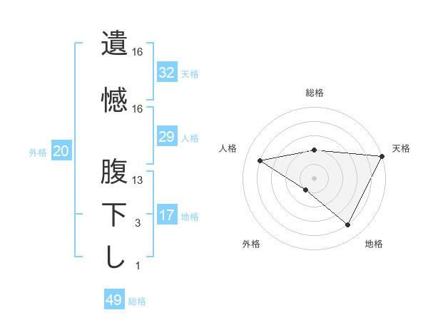 遺憾 腹下しさんを姓名の画数から五運を鑑定