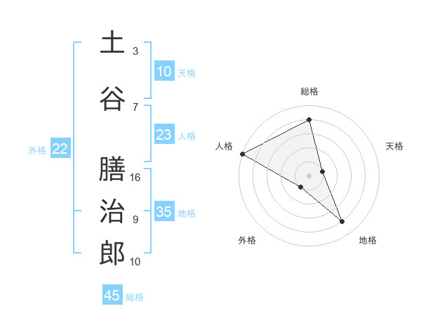 土谷 膳治郎さんを姓名の画数から五運を鑑定