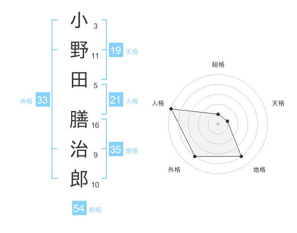 小野田 膳治郎さんの外格は33画の4点!