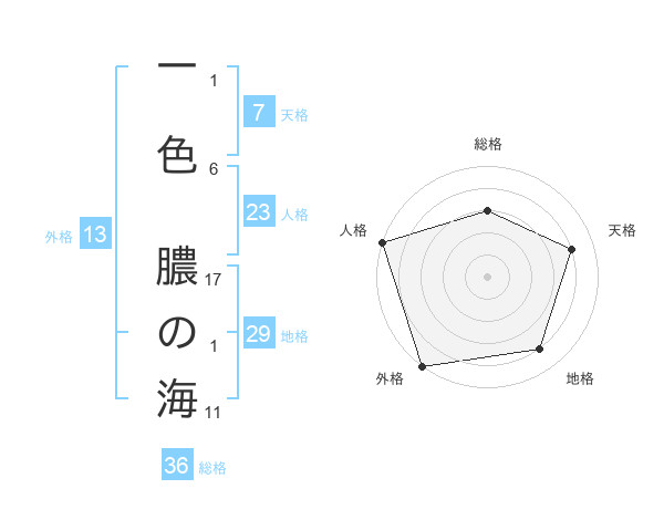 一色 膿の海さんの外格は13画の5点!