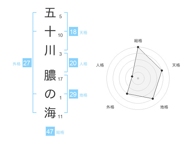 五十川 膿の海さんを姓名の画数から五運を鑑定