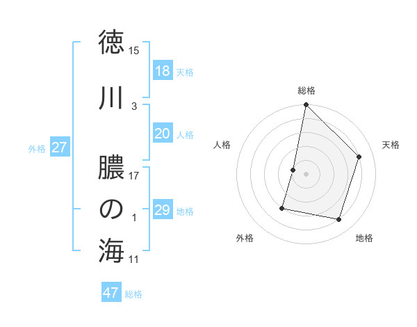 徳川 膿の海さんを姓名の画数から五運を鑑定