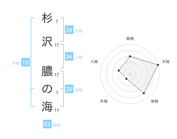 杉沢 膿の海さんの総格は53画の3点!