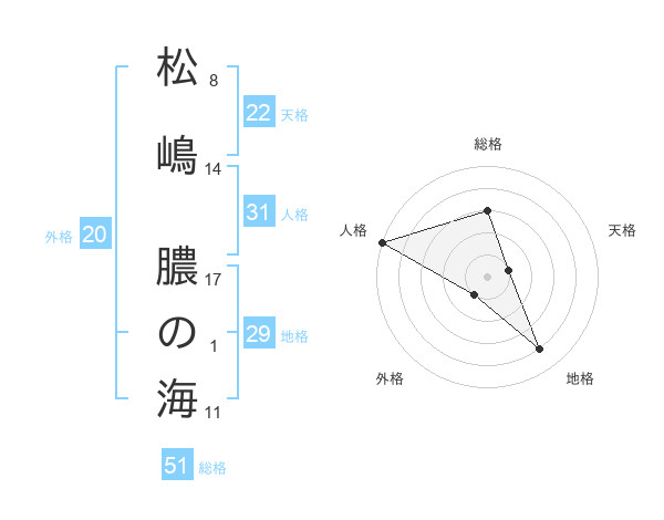 松嶋 膿の海さんの総格は51画の3点!