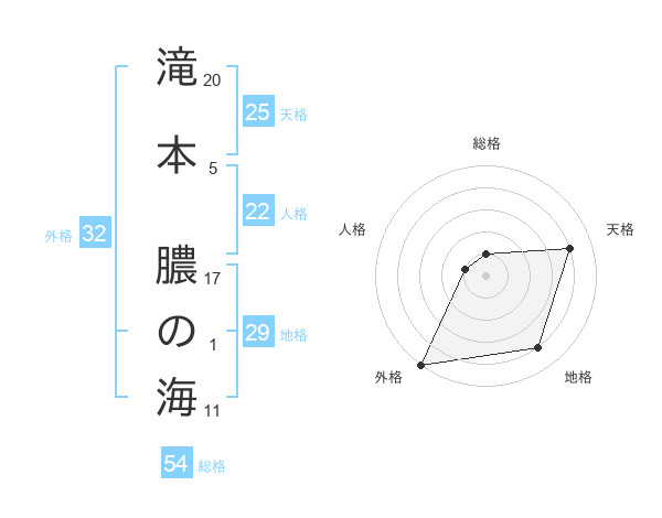 滝本 膿の海さんを姓名の画数から五運を鑑定