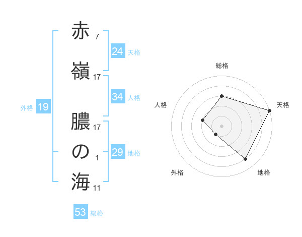 赤嶺 膿の海さんを姓名の画数から五運を鑑定