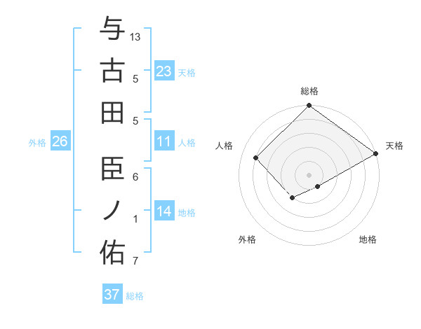 与古田 臣ノ佑さんを姓名の画数から五運を鑑定