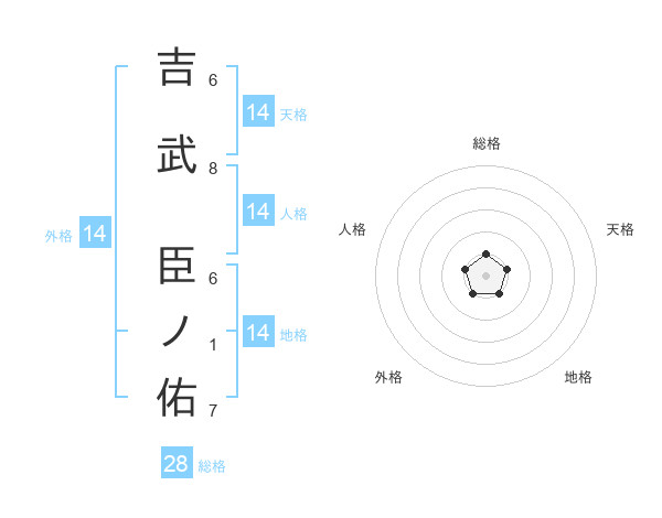 吉武 臣ノ佑さんを姓名の画数から五運を鑑定