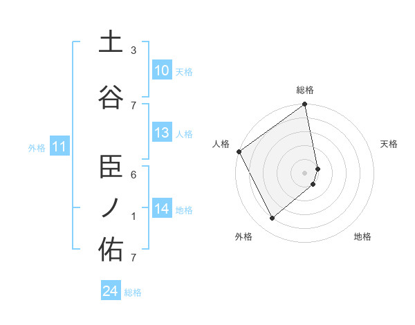土谷 臣ノ佑さんを姓名の画数から五運を鑑定