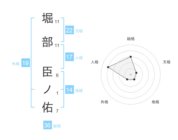 堀部 臣ノ佑さんを姓名の画数から五運を鑑定
