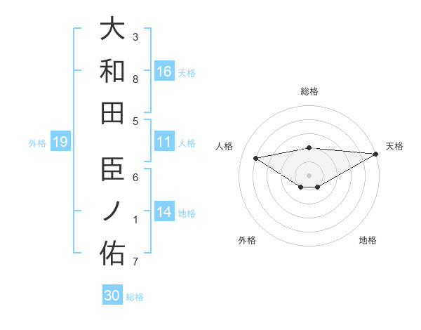 大和田 臣ノ佑さんの総格は30画の2点