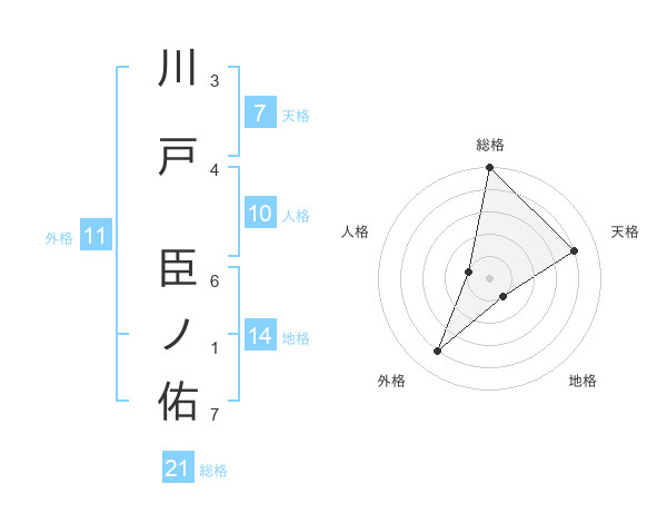 川戸 臣ノ佑さんを姓名の画数から五運を鑑定