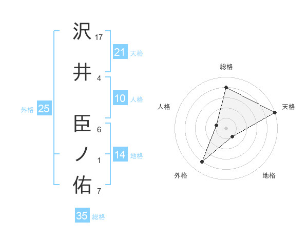 沢井 臣ノ佑さんを姓名の画数から五運を鑑定