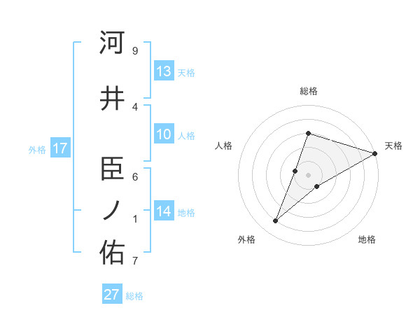 河井 臣ノ佑さんの外格は17画の4点!