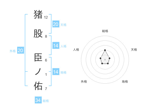 猪股 臣ノ佑さんの総格は34画の2点!