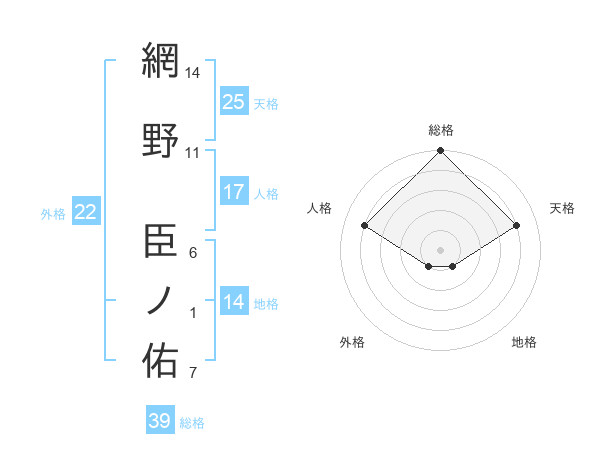 網野 臣ノ佑さんを姓名の画数から五運を鑑定