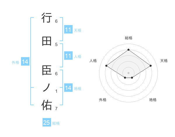 行田 臣ノ佑さんを姓名の画数から五運を鑑定