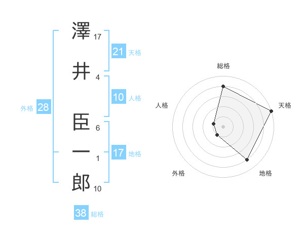澤井 臣一郎さんの天格は21画の5点!