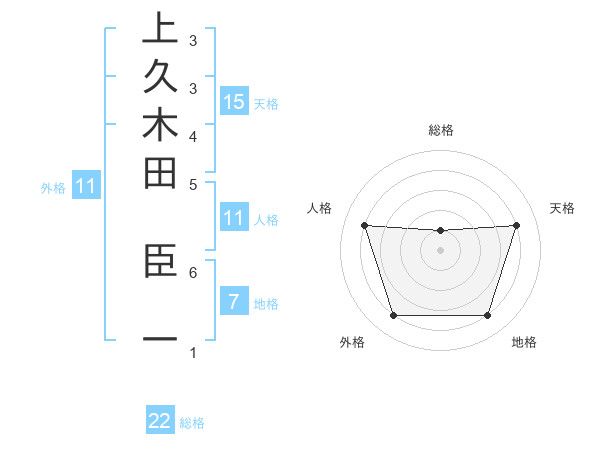 上久木田 臣一さんを姓名の画数から五運を鑑定