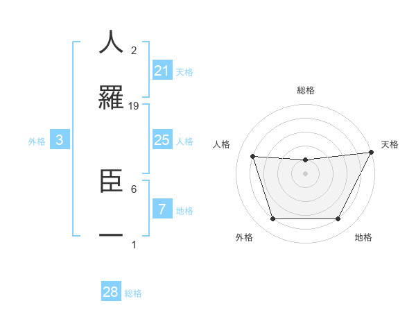 人羅 臣一さんの天格は21画の5点!