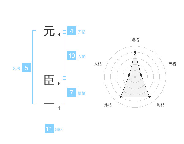 元 臣一さんの総格は11画の4点!