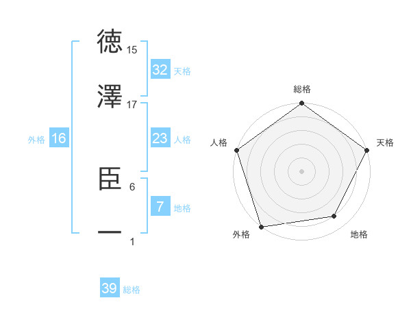 徳澤 臣一さんの天格は32画の5点!
