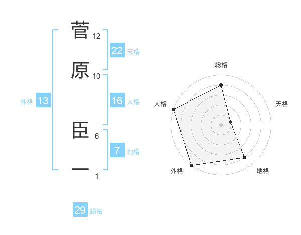 菅原 臣一さんの天格は22画の1点!