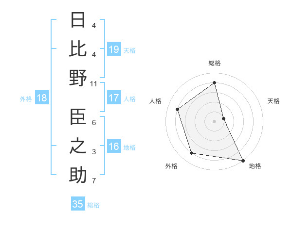 日比野 臣之助さんの天格は19画の1点!