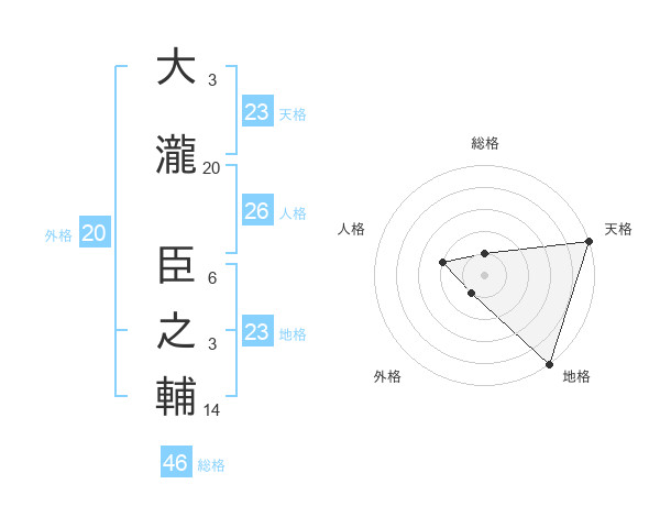 大瀧 臣之輔さんを姓名の画数から五運を鑑定