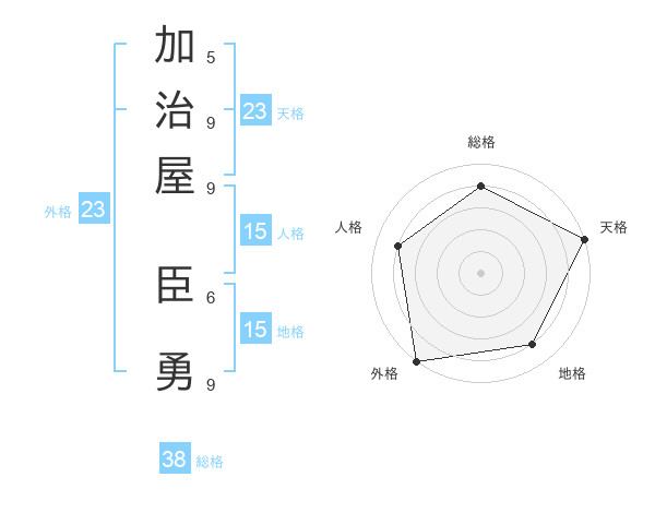 加治屋 臣勇さんを姓名の画数から五運を鑑定