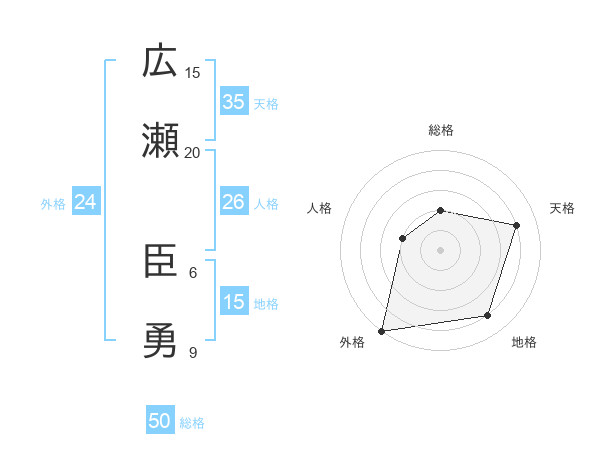 広瀬 臣勇さんを姓名の画数から五運を鑑定