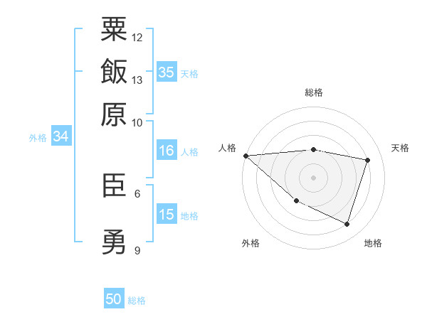 粟飯原 臣勇さんの総格は50画の2点!