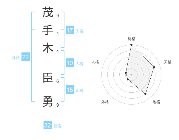茂手木 臣勇さんを姓名の画数から五運を鑑定