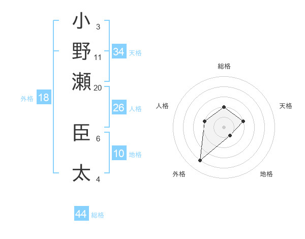 小野瀬 臣太さんを姓名の画数から五運を鑑定