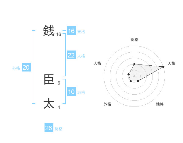 銭 臣太さんの総格は26画の2点!