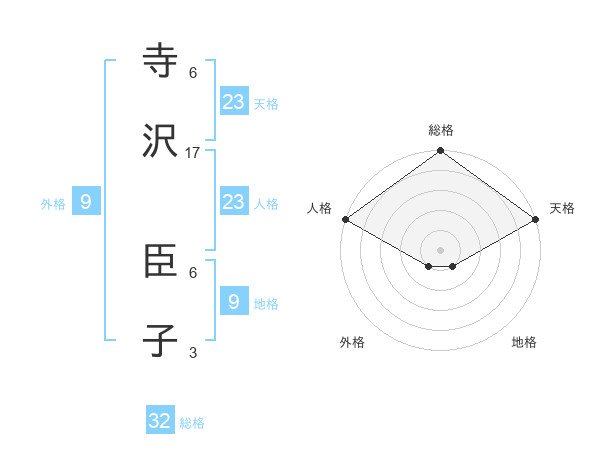 寺沢 臣子さんの天格は23画の5点!