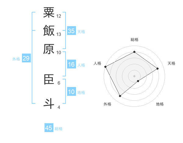 粟飯原 臣斗さんを姓名の画数から五運を鑑定