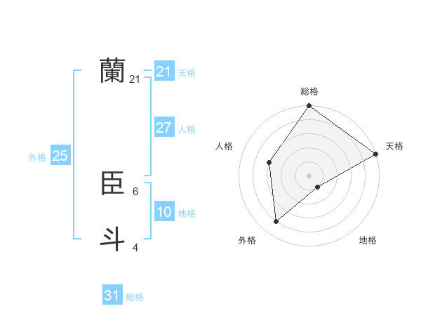 蘭 臣斗さんの天格は21画の5点!
