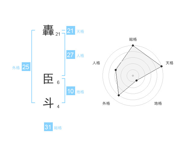 轟 臣斗さんの天格は21画の5点!