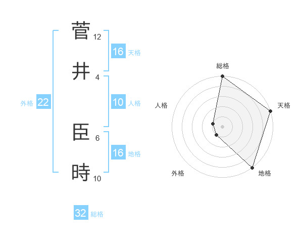 菅井 臣時さんを姓名の画数から五運を鑑定