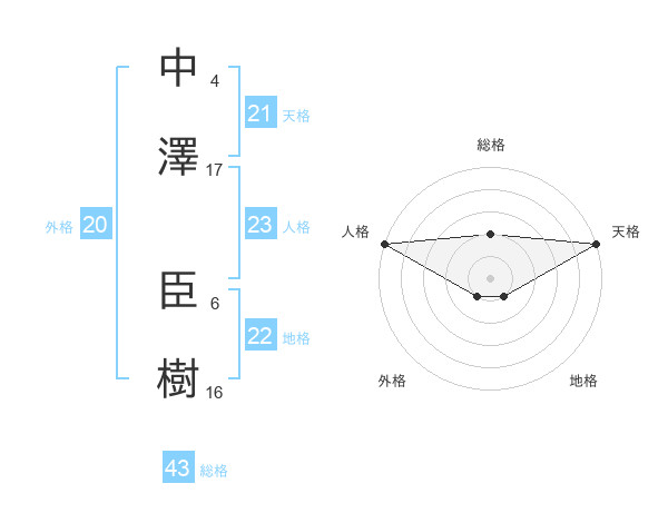 中澤 臣樹さんを姓名の画数から五運を鑑定