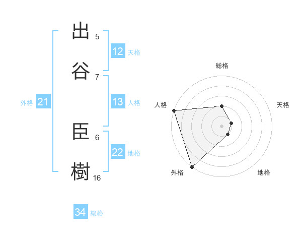出谷 臣樹さんを姓名の画数から五運を鑑定