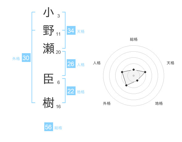 小野瀬 臣樹さんを姓名の画数から五運を鑑定