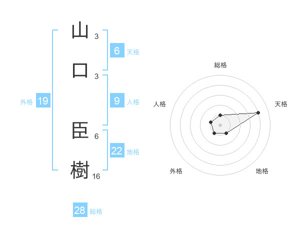 山口 臣樹さんの天格は6画の4点!