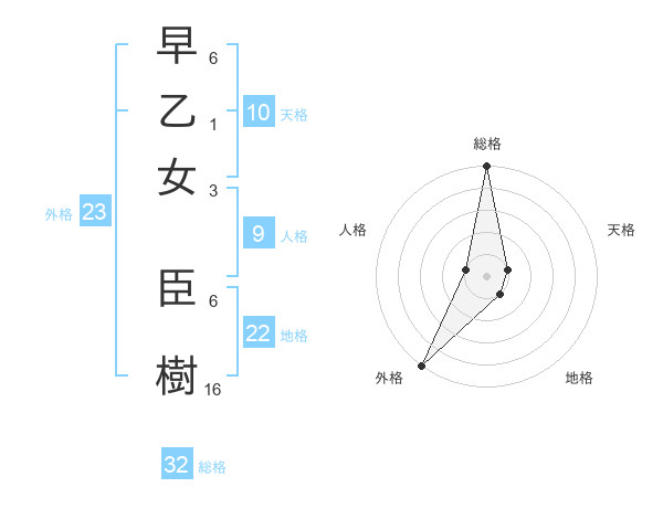 早乙女 臣樹さんの総格は32画の5点!