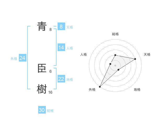 青 臣樹さんの地格は22画の1点!