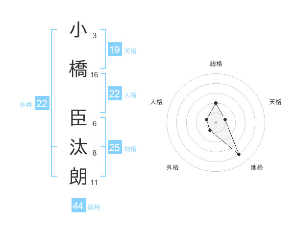 小橋 臣汰朗さんを姓名の画数から五運を鑑定