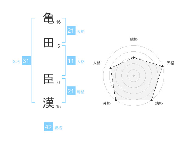 亀田 臣漢さんの天格は21画の5点!