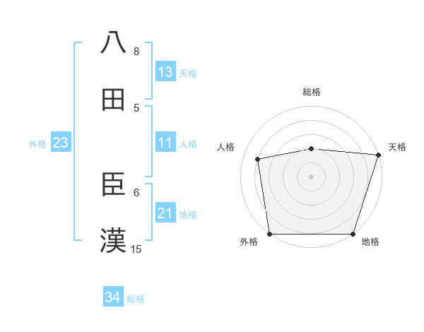 八田 臣漢さんを姓名の画数から五運を鑑定