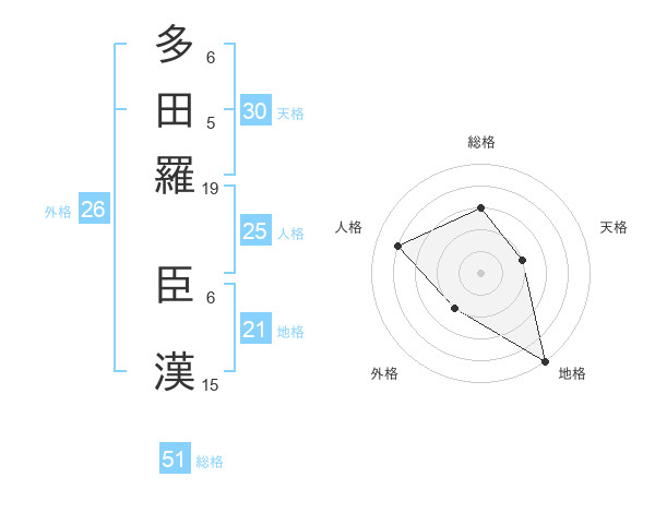多田羅 臣漢さんの総格は51画の3点!